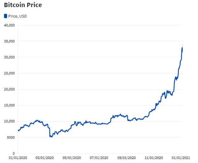 最近,比特币经历了大规模的增长。2020年比特币价格从7195美元起飞,截至目前,比特币的价格已经达到峰值40000美元,并且还在继续攀升。