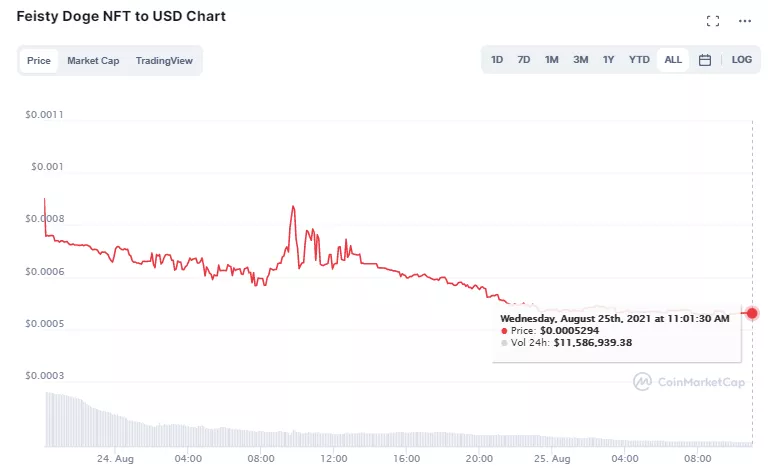 路23号ETH@Cryptopathic创建了feisty Doge的NFT标记NFD,这是一个基于狗币头的碎片NFT;NFD将原本名为卡博苏的柴沟(狗币化身的原)照片的所有权进行了分割,共有1000亿张。发行当日,NFD上涨至0009美元,近24小时交易量超过1.4亿美元。