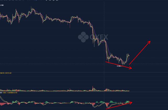 昨日提示短线还差一跌,关注5.5下方,今天15分钟级别若出现底背驰,择机做多。目前15分钟标准底背驰已经出现,多单应该已经入场,短线先关注5.9一线。