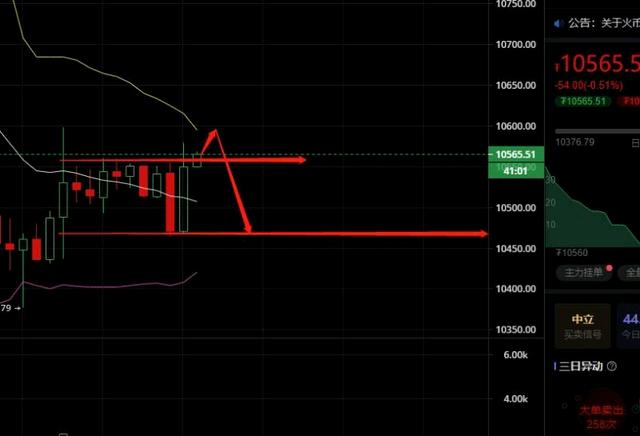 10580一线进空,防守90个点,短线目标看10400!