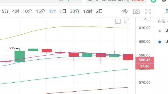 2.价格触及595位置附近空单进场,止损599,止盈看588附近
